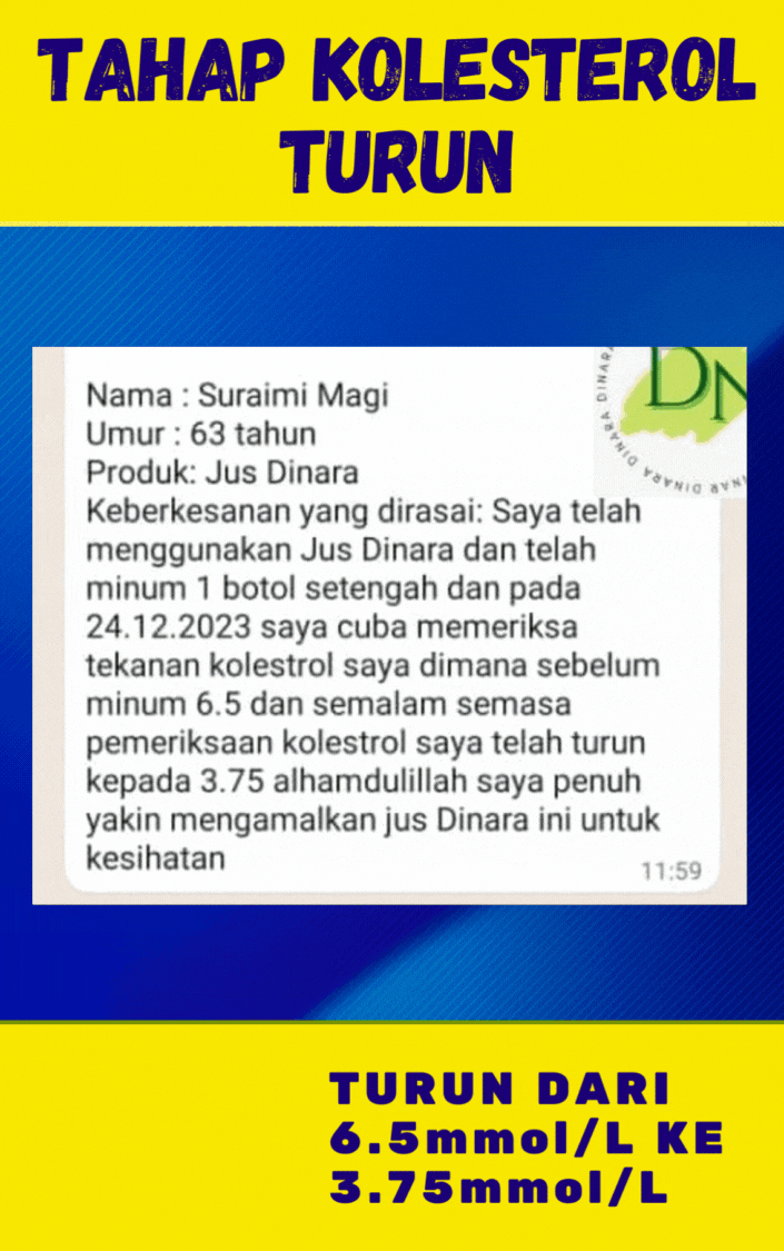 Sebabnya, selain paling bagus untuk Kolesterol, Dinara juga berkesan dalam bantu